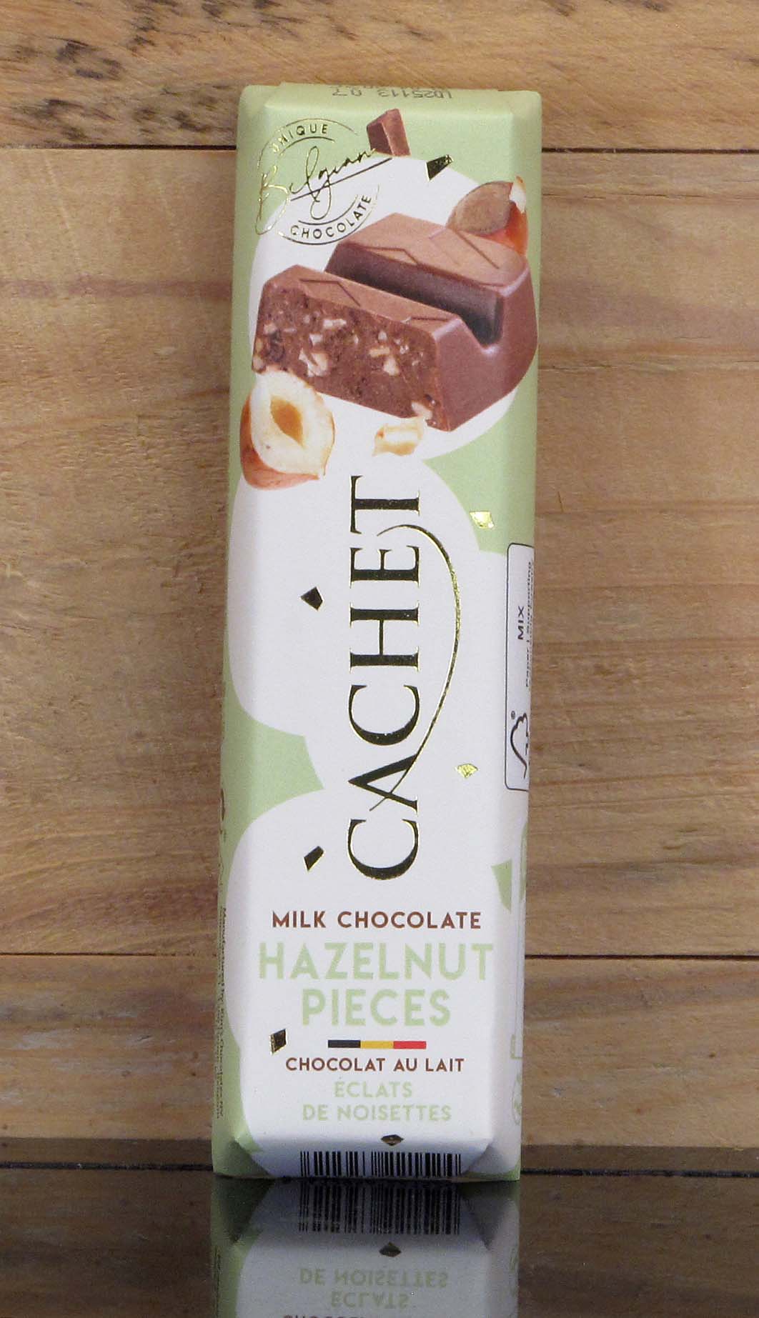 MINDESTENS HALTBAR BIS 23.04.2026. Leckere belgische Vollmilchschokolade mit Haselnussstückchen. Oftmals genau die richtige Größe. Nicht zu wenig und nicht zu viel, einfach genau richtig. Richtig lecker. Paßt in jede Tasche. Das Riegel-Genuss-Erlebnis von Cachet, klein, aber oho! Kühl und trocken lagern (Optimal zwischen 15-20°C, also doch besser keine Hosentasche!).